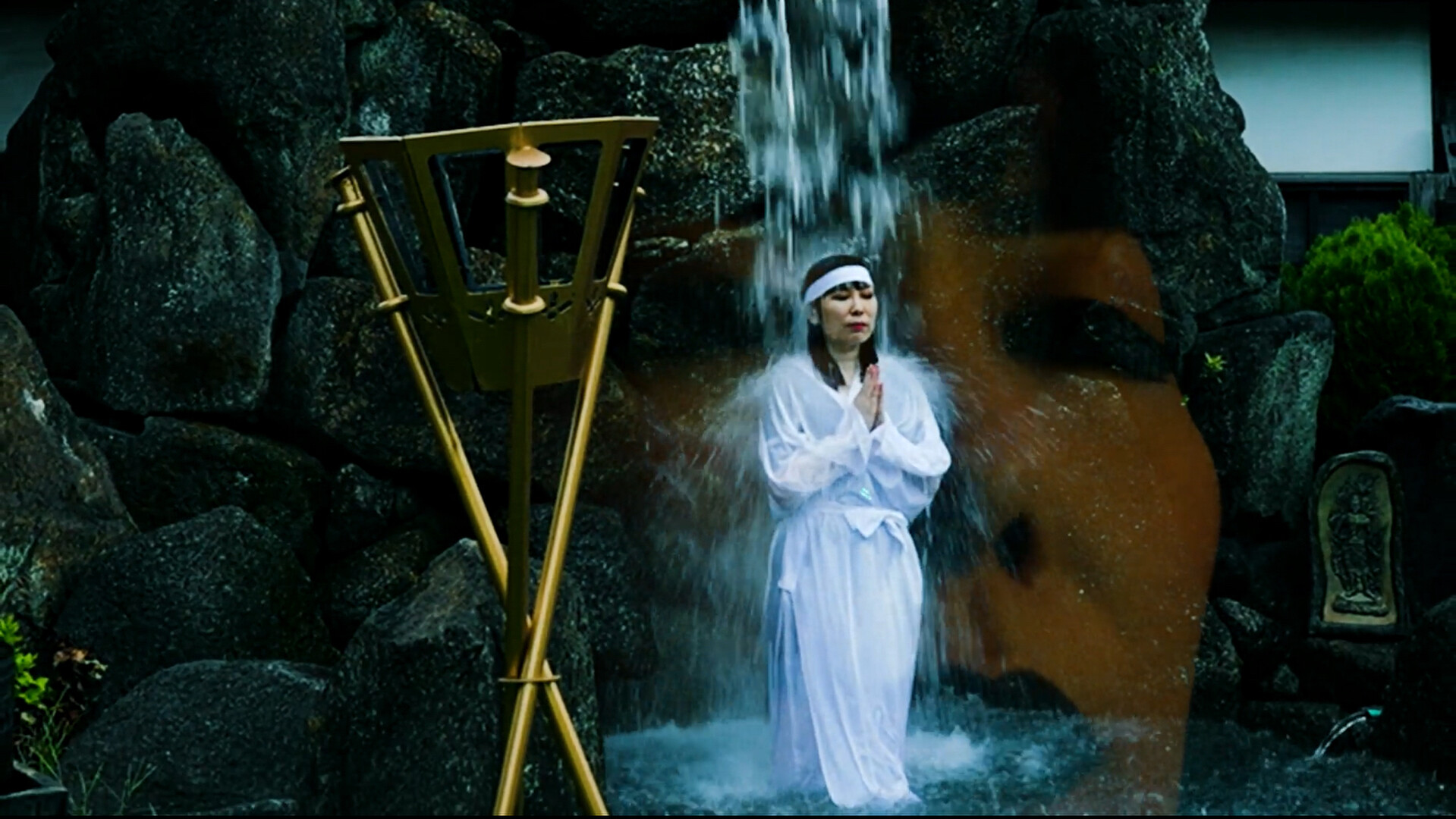 Next, the movie shows Rain (and other people in the audience) absorbed by the words the guru speaks very slowly in his conference. Instead of filming the lecture or whole parts of it, director RK Israel Tamang prefers to shoot only small excerpts. In doing so, the arguments of his counselling are kept exclusive to the ones who actually attend his classes.