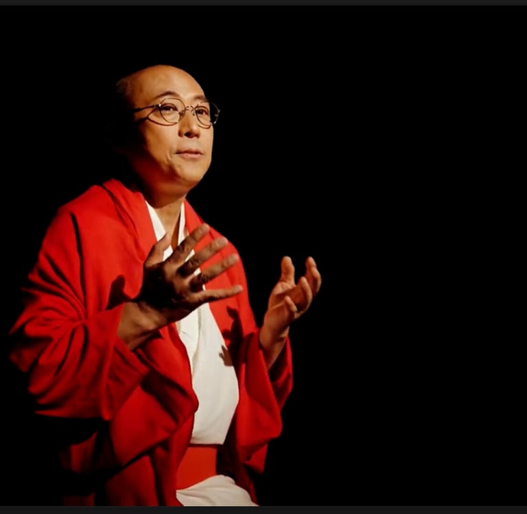 The character of the guru, Enko Sakai (played by himself), is presented in the following scene. It is a montage with Sakai walking in the center of Hollywood. Full of graphic effects, it resembles a TV show about tourism. This segment feels a bit too long, as it does not contribute to the narrative more than showing that the guru has arrived in Los Angeles for his conference.